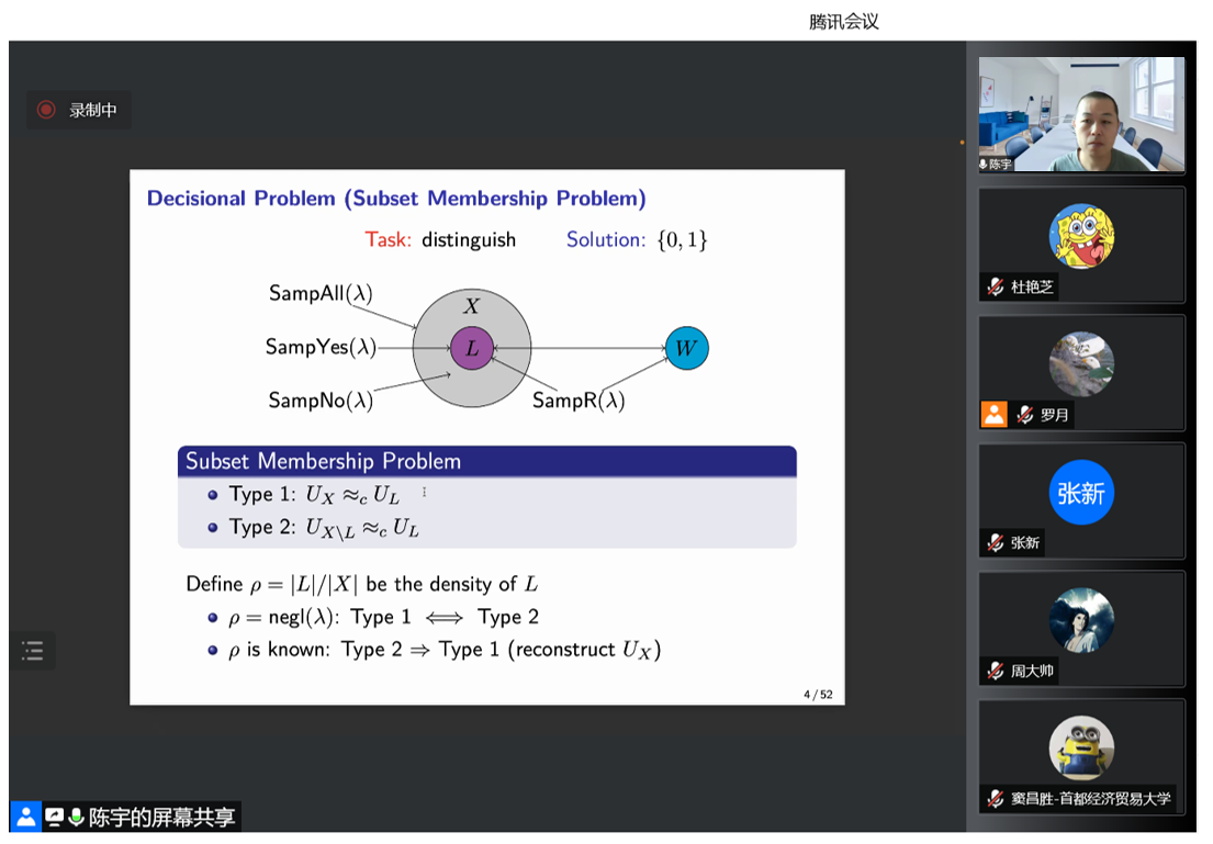 其中,山东大学的陈宇老师讲授课程“公钥加密的理论和应用”,介绍了公钥加密(PKE)的通用构造方法与技术,以及公钥加密在密码货币中的重要应用。复旦大学的李颖洲老师讲授课程“超大规模集成电路EDA中的算法”,从EDA工具的完整流程框架出发,以计算数学的角度介绍其中的重要算法设计与实现。清华大学的张景昭老师讲授课程“机器学习理论”,从机器学习理论框架出发,梳理优化理论在机器学习中的角色。中国科学院数学与系统科学研究院的李向东老师讲授课程“最优运输理论和应用”,介绍了最优传输问题的背景和部分重要研究成果,并介绍最优传输理论在偏微分方程、微分几何、随机矩阵及经济学等相关问题中的若干应用。