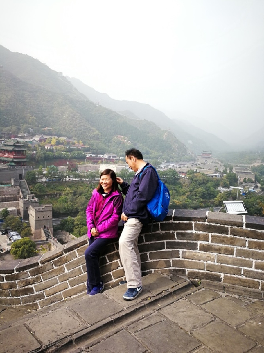 登上长城,会让人浮想联翩。曾经多少久经沙场的将士昂着头从这里走过;曾经多少倒在城墙上的士卒从这里被默默抬出;曾经多少血与泪、悲与欢的故事在这里上演过;曾经多少鲜为人知的历史在这里转折过。参加此次秋游的既有2岁多的小朋友,也有60多岁的老人,大家组成了一个欢乐的大家庭,在爬长城的途中愉快畅玩,亲情、友情、同事间的情义在此次活动中体现得淋漓尽致,数院工会副主席周蜀林老师还特为学院一对深情款款的夫妻作诗一首,题为《相伴》,诗文如下: