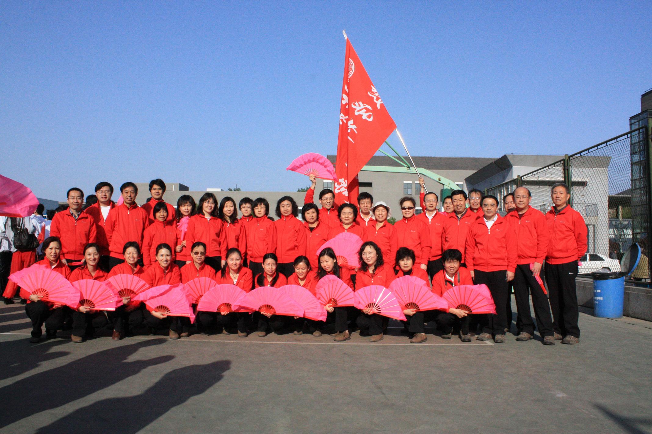 在团体操表演中,数学的表演队伍和谐划一,舞步翩跹,教学科研一线的老师从紧张的工作中抽身出来,投入到“手舞足蹈”当中,与其它院系相比,尤其引人注目的是十七位男老师的表演,他们刚柔并济,更见风采,举手投足间足见小教员和各位表演者平日所下功夫之深。