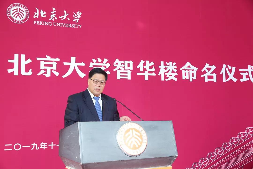 对林高演先生慷慨资助和学校对学院多年来的大力支持表示衷心感谢。他介绍了北大数学的发展历程和现状,并表示,林先生的善举为北大数学的未来发展提供了新的强劲动力。在改造后的智华楼内,数院师生将继续潜心治学、勤奋耕耘,为智慧中华的事业做出北大人应有的努力和贡献;而智华楼也必将成为北大人知识分享、思想交流、思维碰撞、理论创新的新平台,助力北大乃至中国高等教育事业不断前进,取得更大的辉煌。
