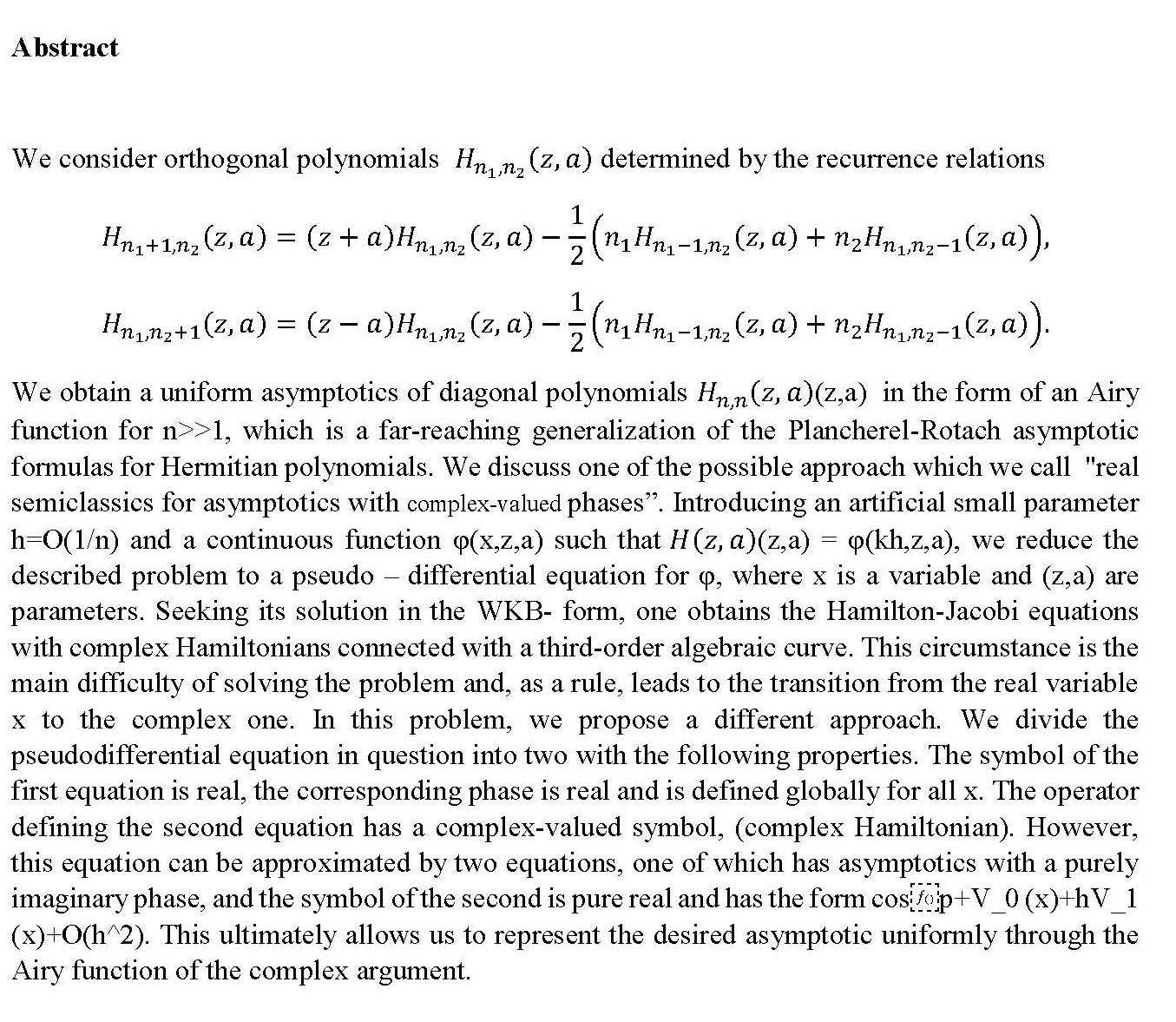 报告人:S. Yu. Dobrokhotov, A.V. Tsvetkova (Ishlinsky Institute for Problems in Mechanics RAS)