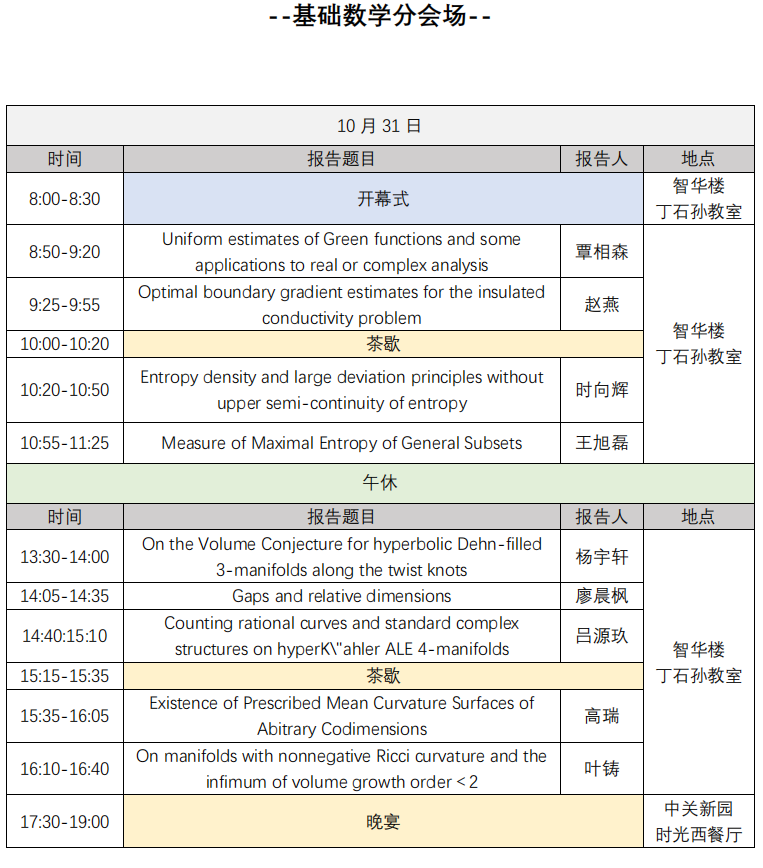 开幕式:10月31日上午 8:00-8:30 智华楼丁石孙教室