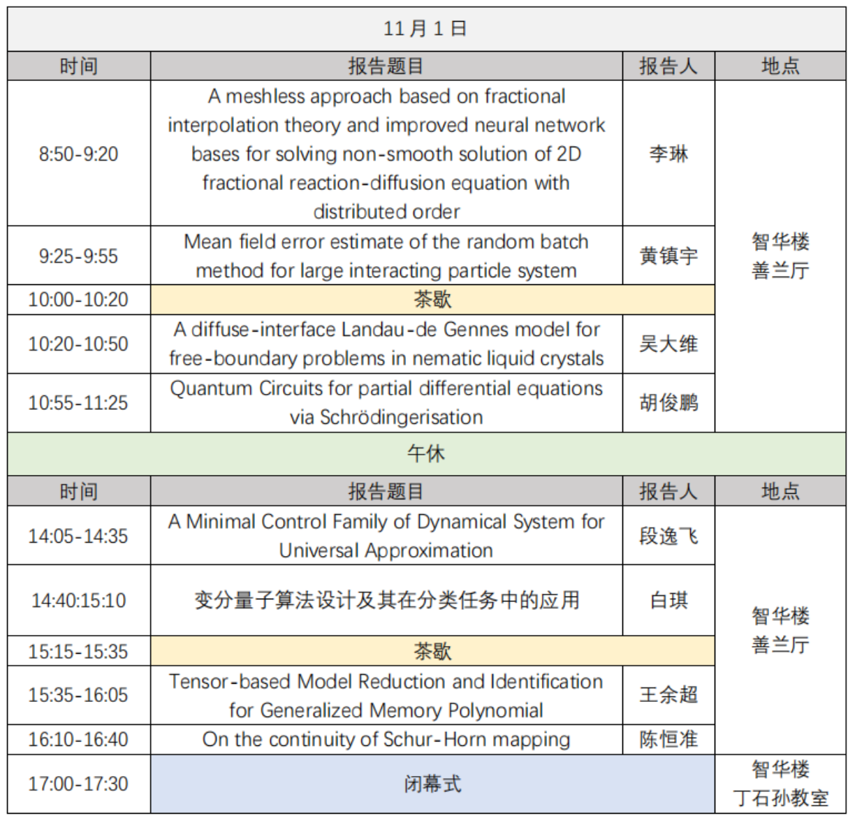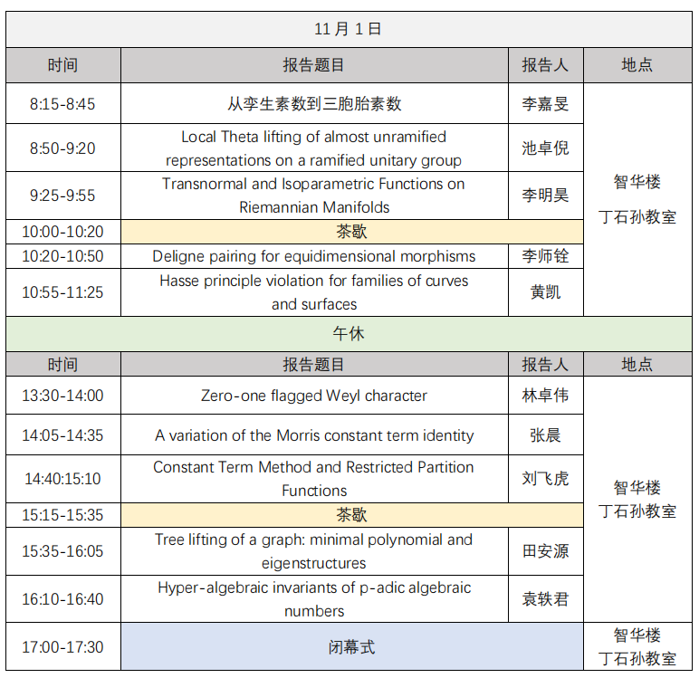 闭幕式:11月1日下午 17:00-17:30 智华楼丁石孙教室