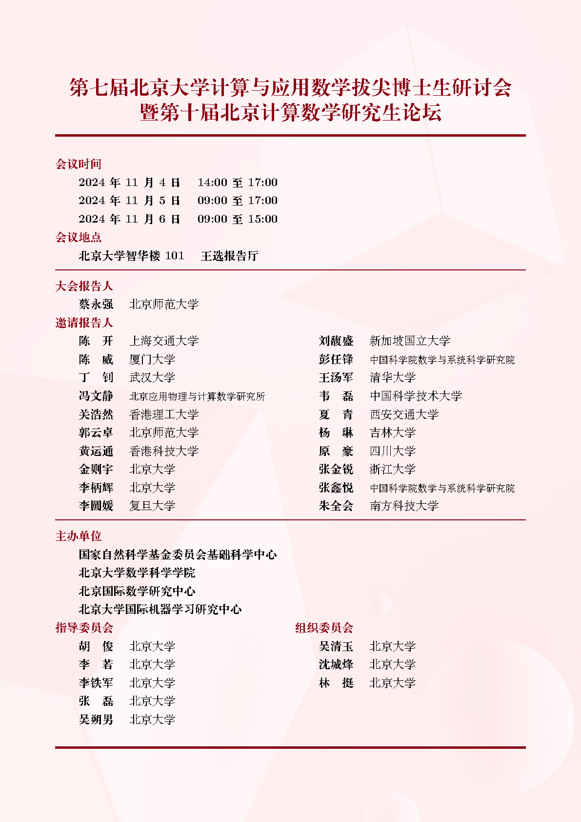 计算与应用数学拔尖博士生研讨会暨第十届北京计算数学研究生论坛计划于2024年11月4日-2024年11月6日在做爱影片