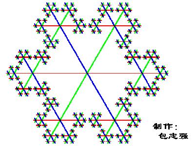 This antenna space is the universal covering space of three circles (colored red, green and blue) that are pined together.