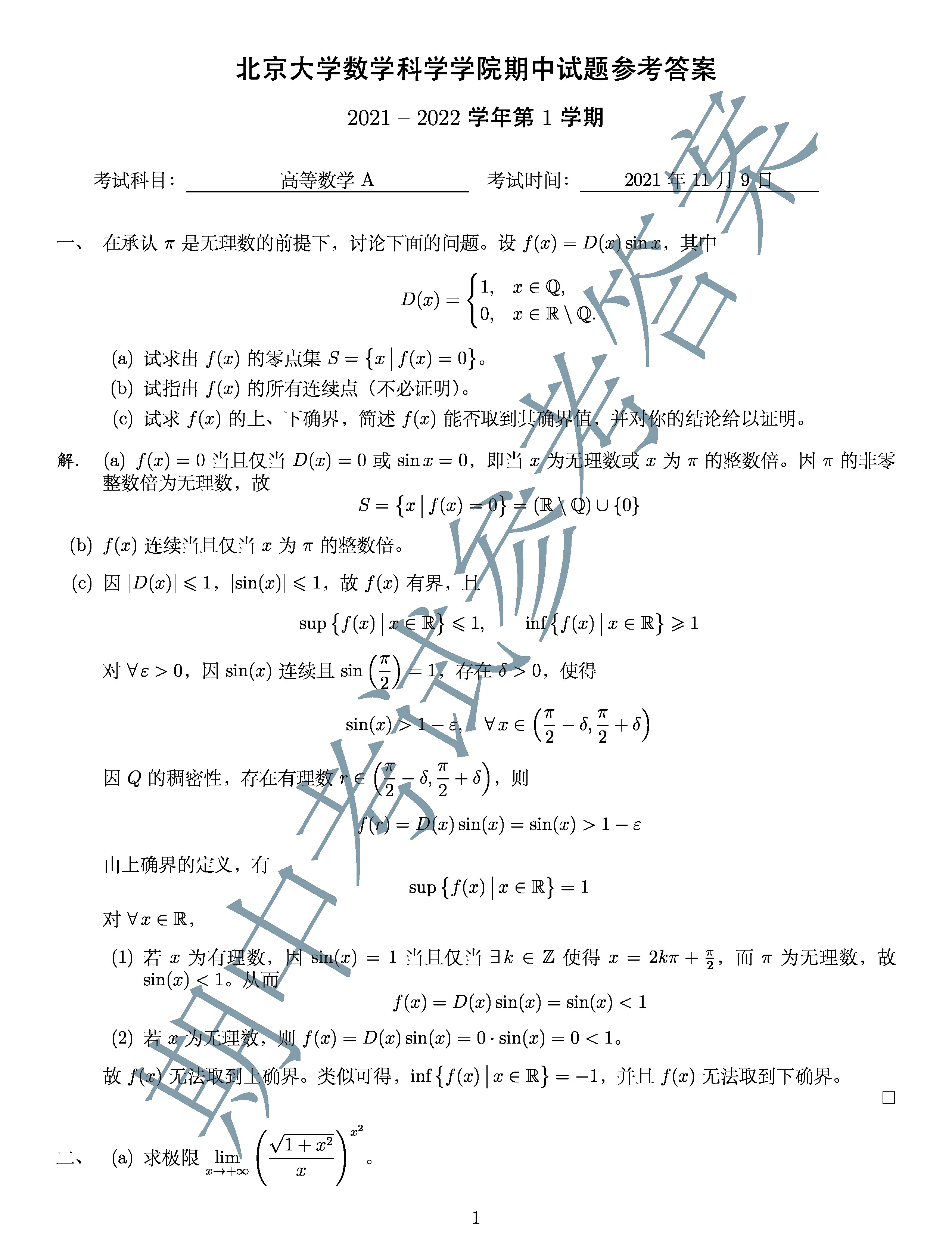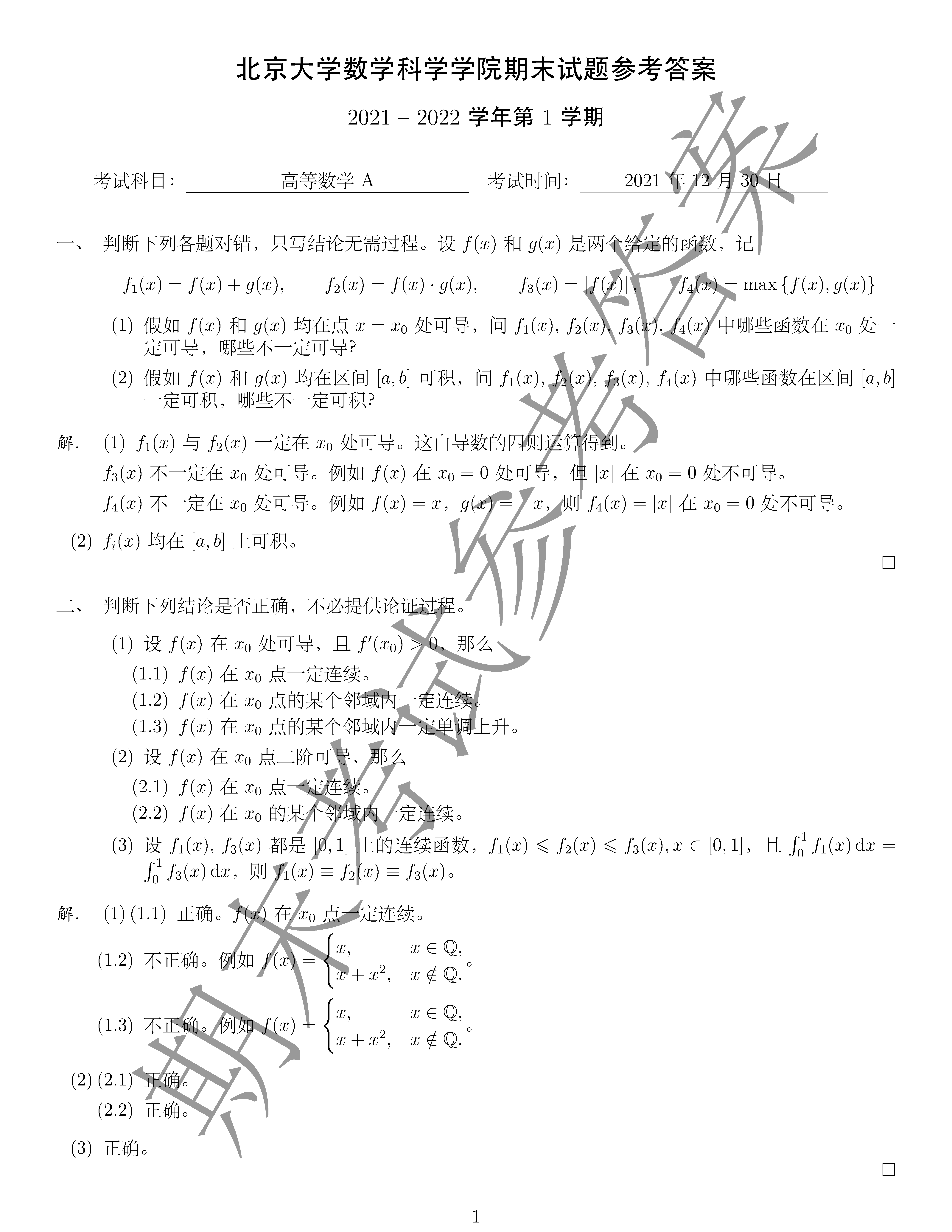 期末考试:2021年12月30日上午,地点在理教306/309。非标准答案