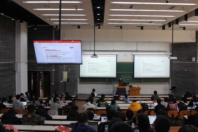 紧接着就业指导服务中心副主任吕媛进行就业形势的解读和求职准备的指导。她通过近几年的就业数据向同学直观地展示了高校毕业人数及求职人数,为同学解读国家政策释放的信号,吕老师鼓励大家不用过度焦虑,要相信自己具有极强的竞争力。在具体的求职准备上,吕老师从如何选择职业和如何对待投简历面试两个方面进行讲解。她建议毕业生可以按照方向、行业、岗位、公司的顺序考虑职业选择,提升自己的内职业生涯,职场上更需要的是快速学习能力和职场软实力。最后她送给毕业生们一段四字短句:适度焦虑:切勿焦躁,从容应对;多做尝试:笨鸟先飞,从干中学;汇总调整:及时总结,随时调整;自我节奏:关注他人,和自己比;求职是一场试炼:不求完美,成熟心态。