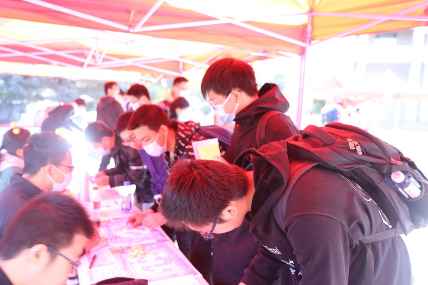 向大众科普数学文化、展示数学魅力,让更多人对数学有更真实、可感、亲切的体会,是数学文化节的目的之一。为展现数学的趣味性,文化节特别设置百讲广场文化展示单元,每年都会吸引数百人踊跃参与。今年,以“门槛低”和“上限高”为原则,数院同学自主设计、改编了“突破封锁线”“拼多多”“鸡识树”“填鸡赛马”“色块迷踪”“博弈者在数学国”“向未知前进”“过河大作战”“漫天卷地”“算数华容道”“卷鸡之战”等11个趣味游戏,于11月1日在百周年纪念讲堂广场展出。这些游戏各具特色、充满新意,不仅吸引了路过的老师、同学,现场还有不少小朋友驻足停留。参与者们或冥思苦想,或激烈辩论,在破解游戏谜题中碰撞思维火花、感受数学魅力。