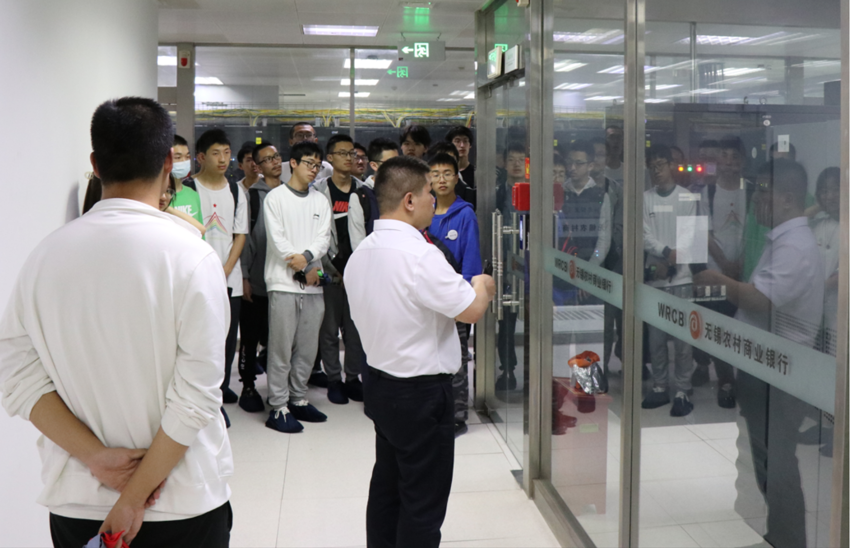 在营业大厅,同学们了解了网上银行线上化、智能化、场景化、平台化的新形式,以及无锡农商行在银行业务、客户经营、场景运营、风险管理等方面的数字化转型。同学们了解到,在普惠小微方面,无锡农商银行深耕区域、提质增效,全面激发小微业务发展的动力、活力和能力,形成了“一盘棋”的良好发展局面,切实体会到数据真正产生生产力的强大作用。在锡银总部机房,同学们了解了机房系统选址建设、应急措施和“两地三中心”防灾准则等各方面保障机制,着重倾听了服务器系统的工作布局。本次参观让同学们深刻认识到信息化在颠覆客户使用体验、提升银行管理水平、重塑行业服务面貌上的重大作用,深刻领悟了“科学技术就是第一生产力”的内涵。同学们纷纷表示,作为数院学子,要潜心学问,夯实基础,学好专业知识,扎实专业功底,为建设科技强国、实现中华民族伟大复兴作出更大贡献。