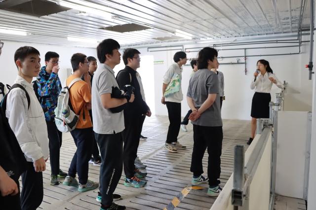 随后,师生们来到肉食品城,参观年产量200万头的屠宰流水线。整条线自动化水平高,机器已经参与到高温去毛、肉质量检测等诸多工作,而内脏分离等较精细化的工作仍由人工完成,机器与人工并用,兼顾了效率与质量。同学们感受到,养猪场智能化程度不断提高,每一款科技产品都离不开技术原理和实践的紧密结合。