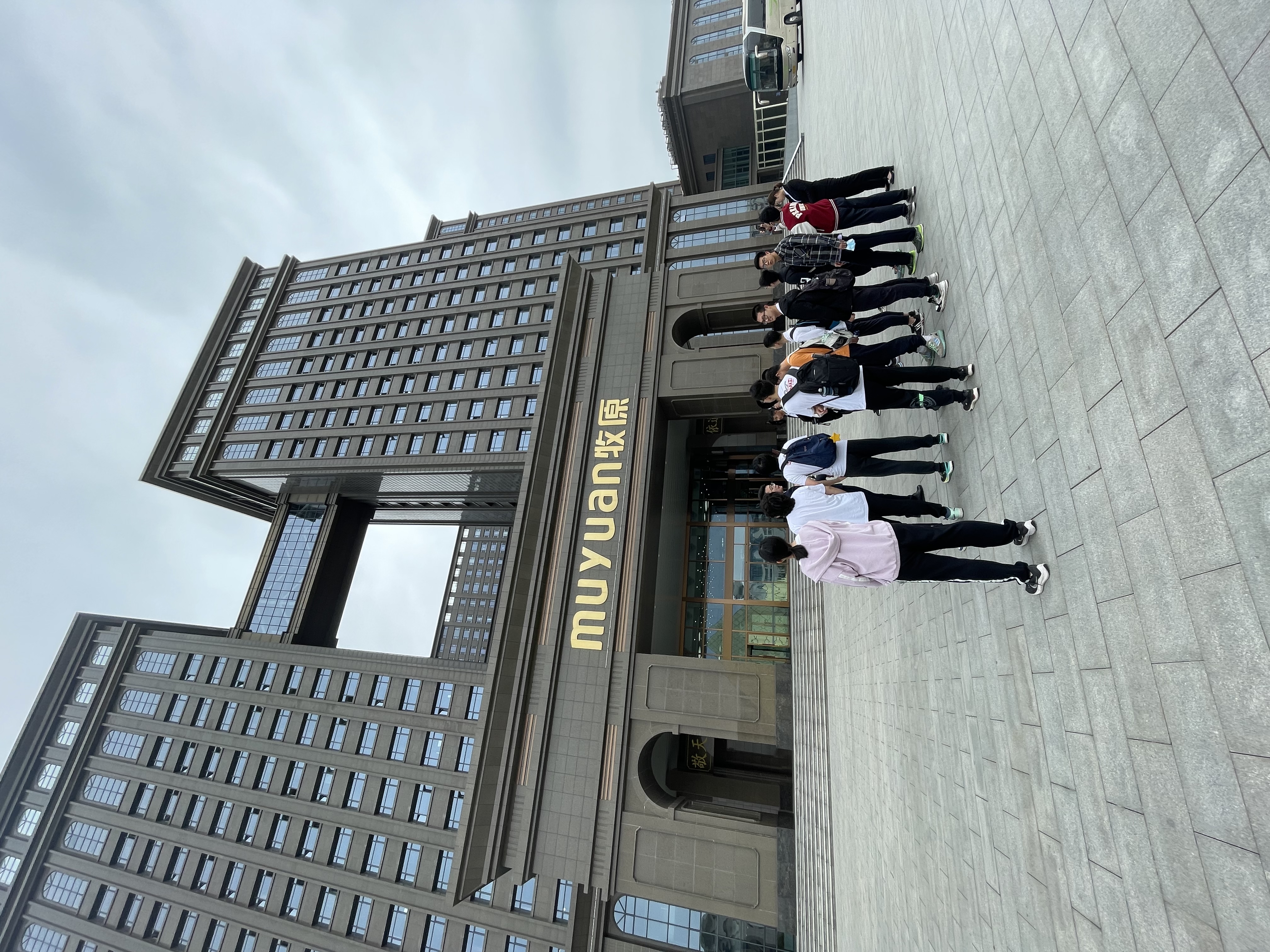 5月4日下午13时,实践团抵达牧原集团总部。跟随着讲解员,大家首先参观了总部双子楼。大楼门口立柱上“严以自律,勇于担当,追求极致,服务社会”的标语,让同学们初步感受到了企业的实干和奉献精神。进入大楼,映入眼帘的是壁画《祖国颂》,大厅两侧则写着“牧原基本法”和“牧原价值公式”,短短几行字承载了企业“回馈社会、带动更多群众富裕起来”的价值追求。