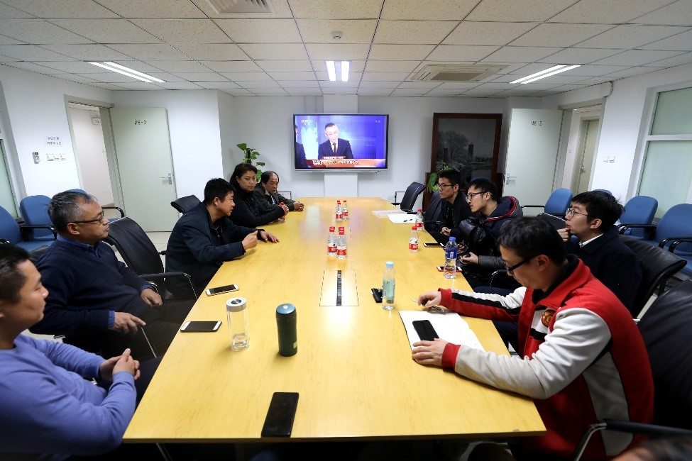组织学生代表与对口联系单位基建工程部共同收看庆祝改革开放40周年大会直播,并进行座谈交流。