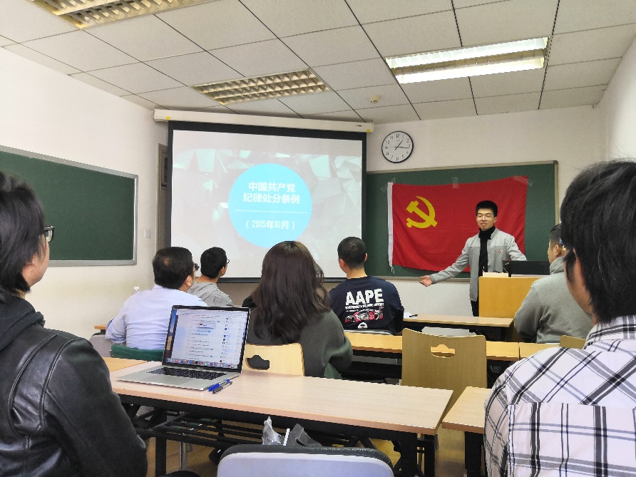 学生违纪处分办法》等校规校纪进行重点学习,并面向班团同学开展宣讲,全面了解与重点学习相结合的模式,为后续党员领学奠定了良好基础。宣讲中把握“关键点”、“薄弱点”“易疏漏点”进行重点解读,结合学习生活中具体案例和情景,通过互动问答、竞赛抢答等形式加强同学们的参与度和对校规校纪的深层理解。4月初,学院召开了专项教育活动总结交流会,学生党支书们就学习和宣讲过程中的经验、反思及创新之处进行交流。学院党委书记胡俊老师在总结交流会上指出,扎实落实党的各项章程是高效开展党内工作的基石,各支部需要在本次专项教育活动的基础上继续加强学习、深入落实,始终发挥好党员同学的示范引领作用。