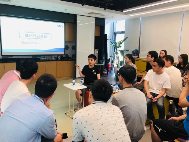 2001级本科院友姚齐聪首先与同学们进行交流,姚总当天专程从上海分公司赶回北京与同学们进行交流,他从量化研究的发展历史,量化与其他行业的比较,以及九坤投资的发展及现状进行了全面的分享。他指出量化是一个反馈快、竞争激烈、要求创新的行业,同时,量化研究很体现个人能力,鼓励有志投身量化行业的同学做好充分准备。