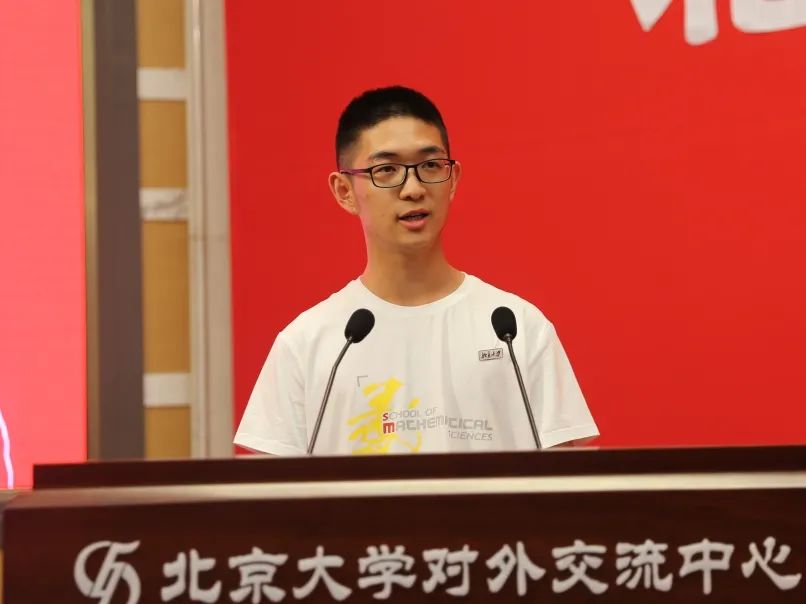 本科生学长代表、2017级本科生谢添雨从学长的角度,为新生展现了北大数院生活的方方面面,他告诉师弟师妹们,生活并不是甜美温馨的童话,而是充满泪水与汗水的独白,只有悦纳生活、接受自己,才能深耕自己的心田、畅游数学的海洋。同时,他也提到,北大数院人时常仰望星空,但也时刻践行着家国担当与情怀,做到“家事国事天下事,事事关心”。