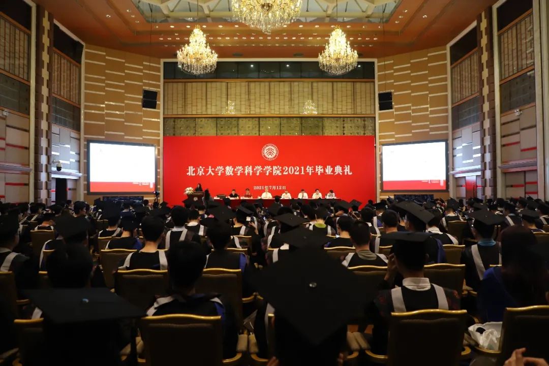 院长陈大岳,党委书记胡俊,副院长史宇光、李若,党委副书记、副院长孙赵君,北京国际数学研究中心长聘副教授董彬,2002级数院校友、宾夕法尼亚大学统计与数据科学系教授丁剑等出席典礼。2021届本、硕、博毕业生和他们的家人近500人参加了毕业典礼。典礼由院党委副书记董子静主持。