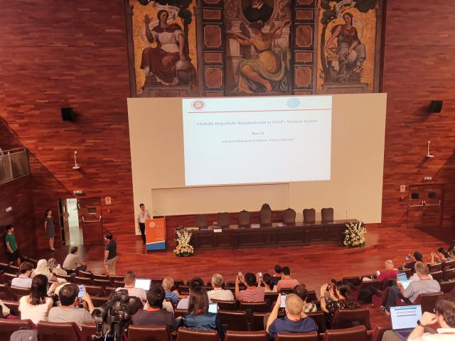李若教授受邀作大会报告,报告题目为“Globally hyperbolic regularization to Grad's moment system”。报告主要介绍了李若教授及其团队最近几年发展的针对动理学方程模型约化方法的全新系统性理论框架,该理论发端于玻尔兹曼方程Grad矩方法的全局双曲正则化理论,对具有一般形式的动理学方程具有广泛的适用性,彻底地改变了动理学方程模型约化方法的理论格局。