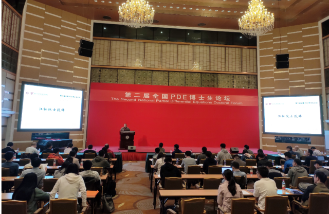 中国科学院江松院士在致辞中首先祝贺第二届全国偏微分方程博士生论坛顺利开幕,本论坛为青年研究者提供了更好的成长环境和更加广阔的交流及发展平台;高度肯定了数学在现代化建设和科技创新领域中不可替代的先导作用,并呼吁广大青年学者潜心研究、努力钻研,多关注国际前沿研究成果和不同学科的交叉研究;吸纳全球青年研究人才,加强交流和合作。