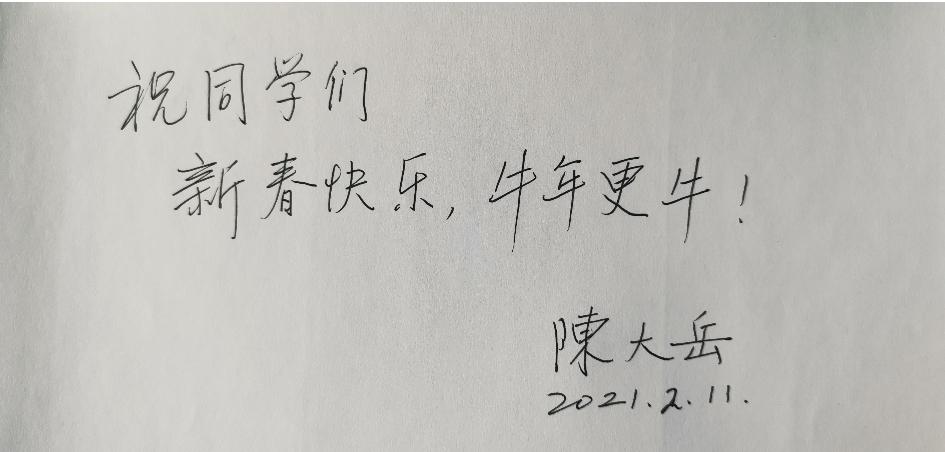 2月8日,农历腊月二十八,学院在理科一号楼1513室举办“迎新春送祝福写春联”活动,陈大岳现场写福字、送福字,学院老师也一同前来写春联、送祝福。同学们在象征喜庆与吉祥的红纸上创作出一幅幅有特色的福字与春联。