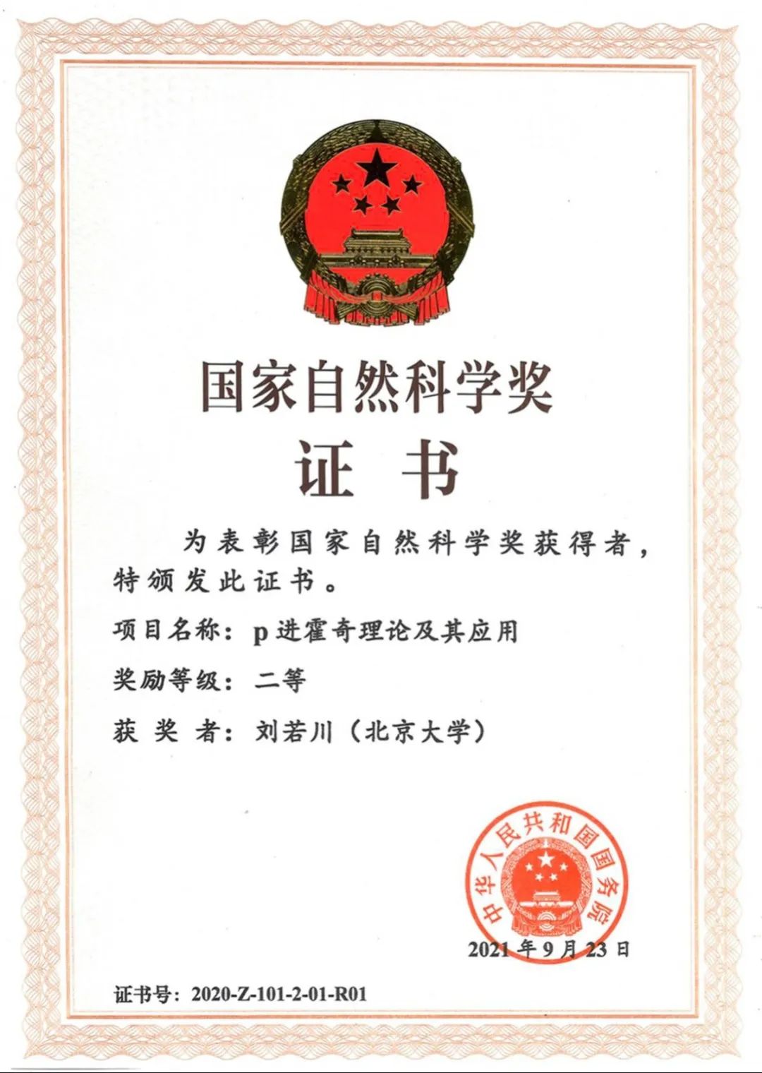 刘若川独立完成的“p进霍奇理论及其应用”项目荣获2020年度国家自然科学奖二等奖