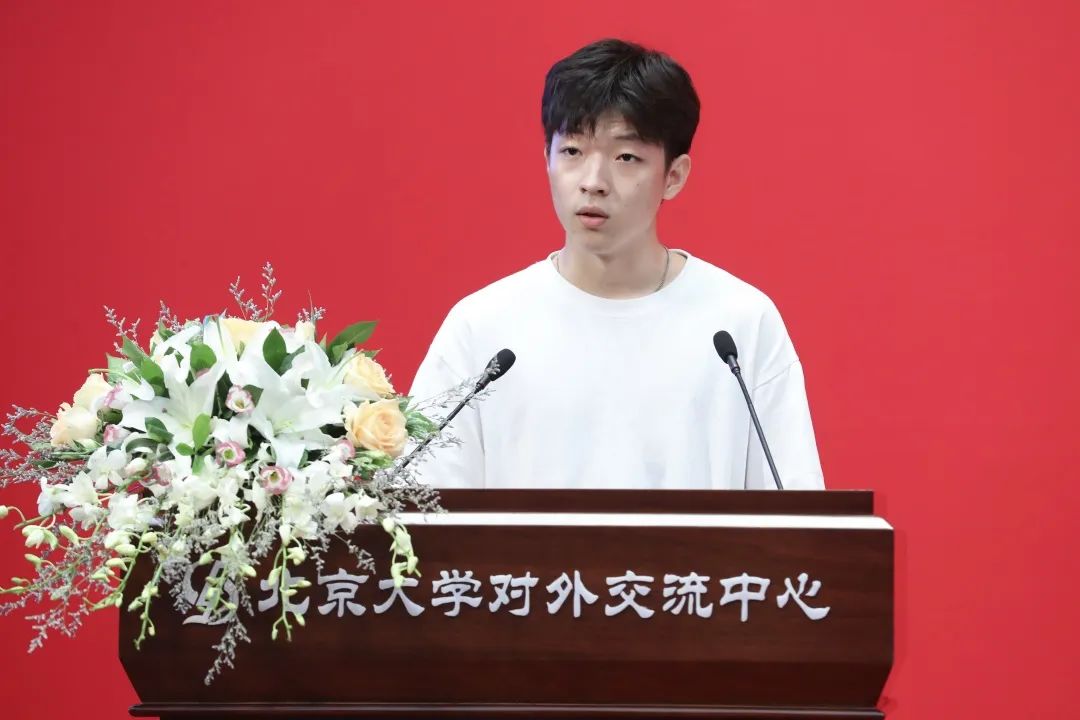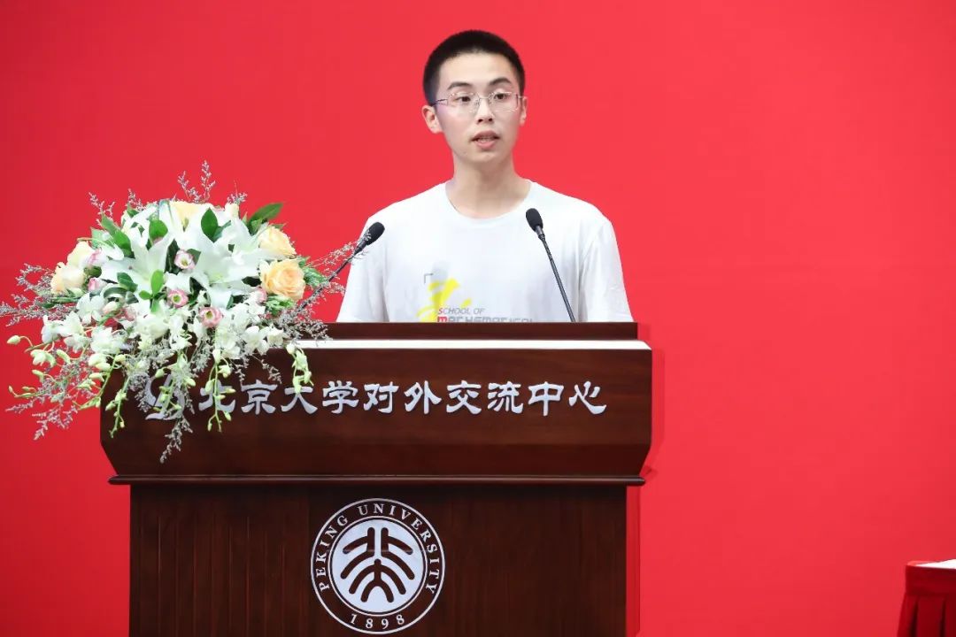 研究生新生代表、2022级硕士生蔡子龙同学以一位数院金融人的身份,分享了自己初入燕园的感受。他表示作为一名北大学子,要具有走出舒适圈,从零开始的勇气,要有以“锯木头”的态度来面对全新挑战的淡然。他希望能够和同学一起,怀揣理想,脚踏实地,做一个有正外部性的人。