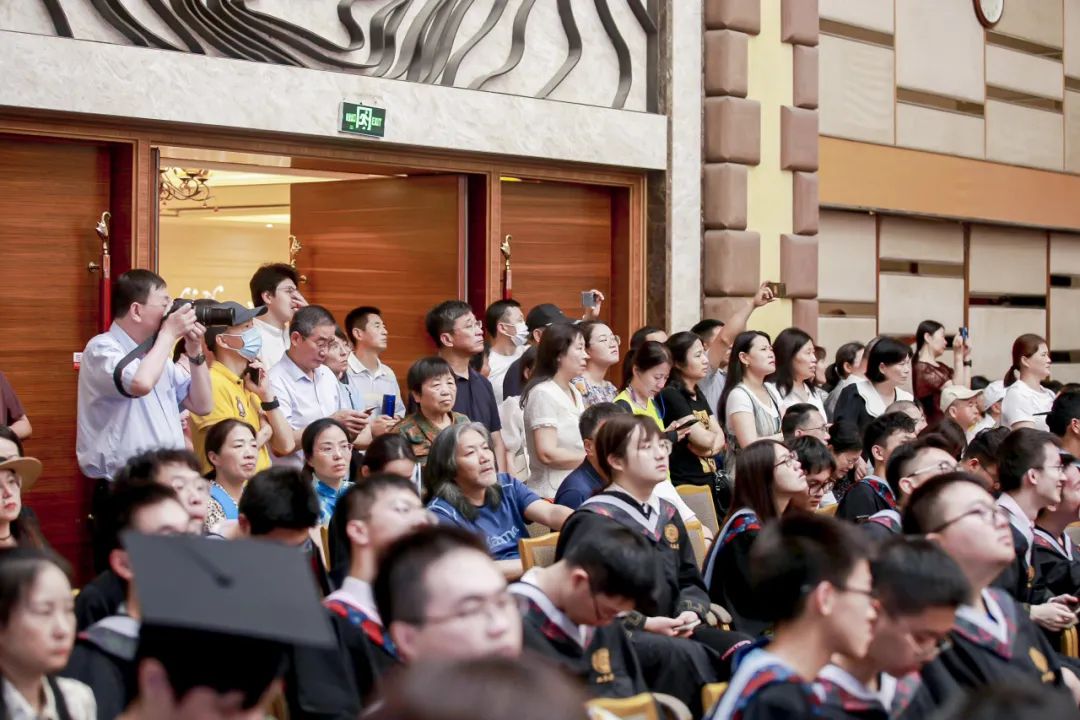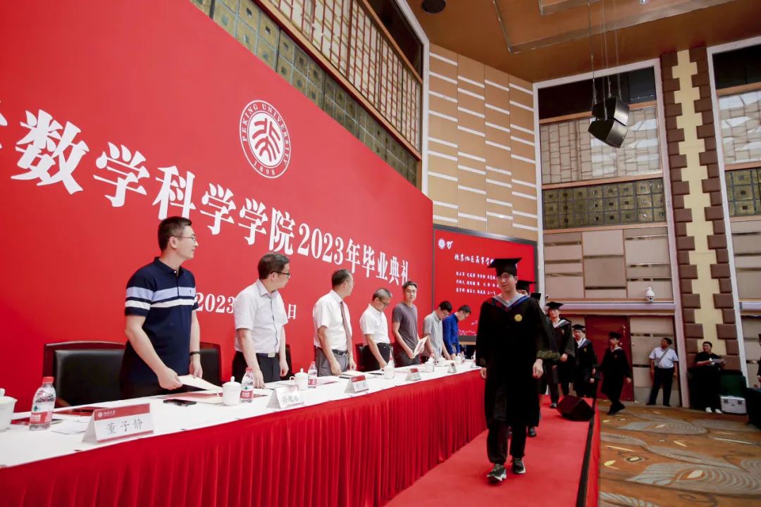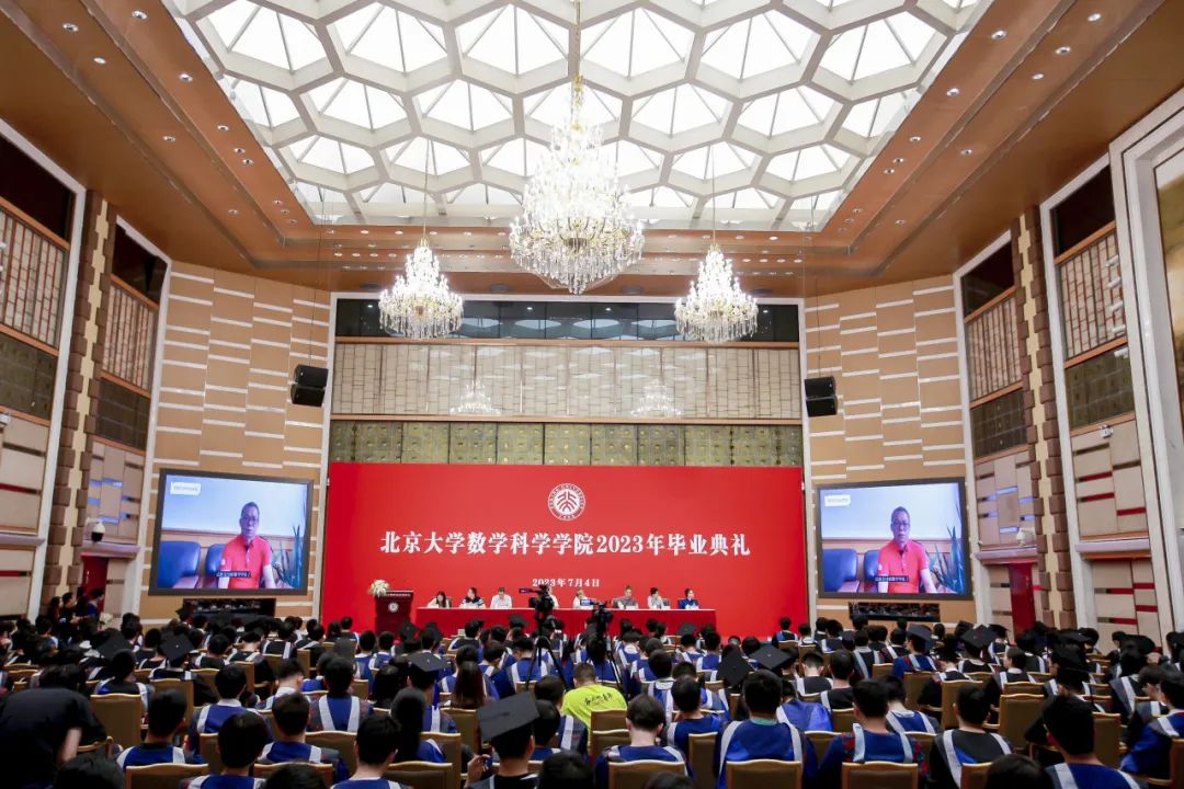 院长陈大岳教授,党委书记胡俊教授,副院长李若教授、刘若川教授,党委副书记、副院长孙赵君老师,教师代表、数学系副主任刘保平研究员,院友代表、2004级本科生、2008级硕士生丁鹏博士,毕业班班主任老师们共同出席典礼,一同见证2023届数院毕业生的重要时刻。亲友分别在理科一号楼1114、425、1560三个分会场收看直播。典礼由党委副书记董子静主持。