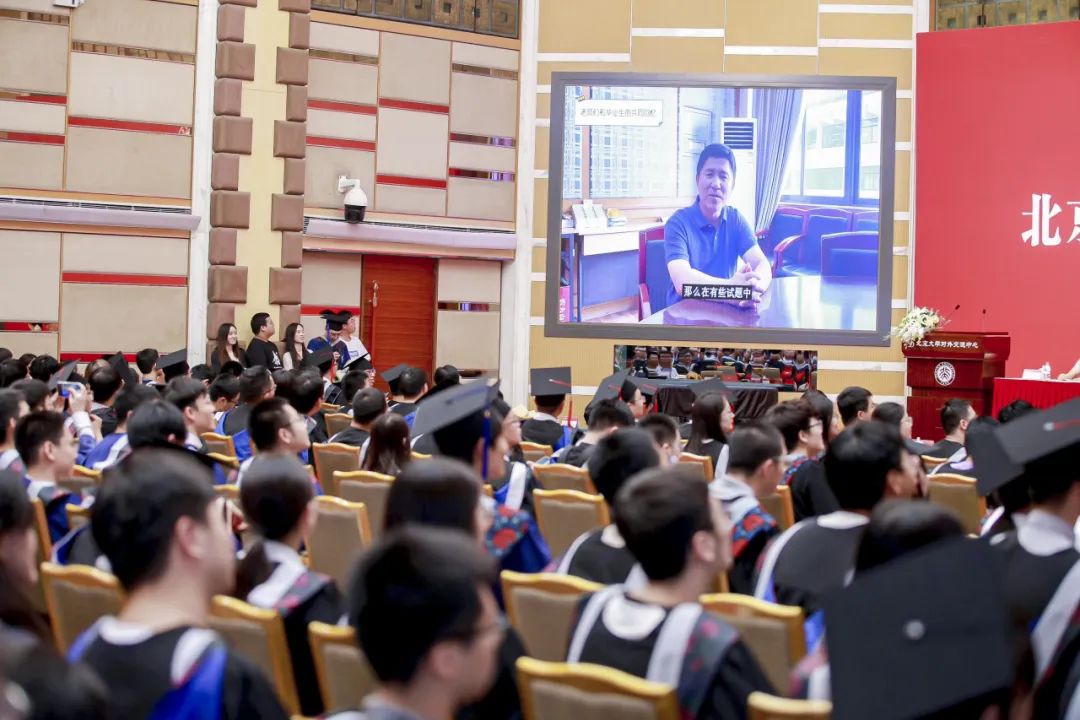 会场播放了教师祝福视频,不同专业、不同岗位的多位教师分享了他们与2023届毕业生的共同记忆,给予毕业生最真挚的期许与祝福。
