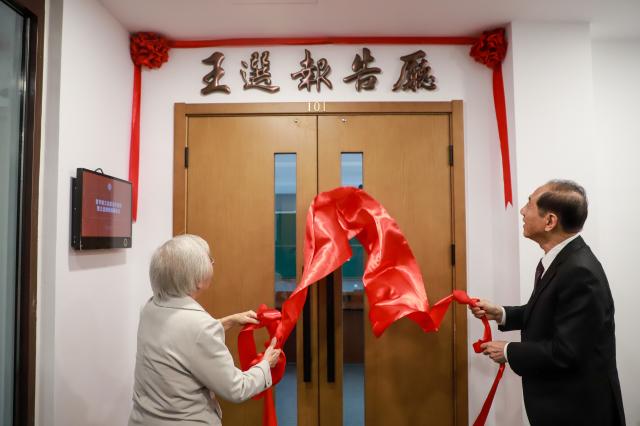 韩启德与陈堃銶为王选铜像和王选报告厅揭幕