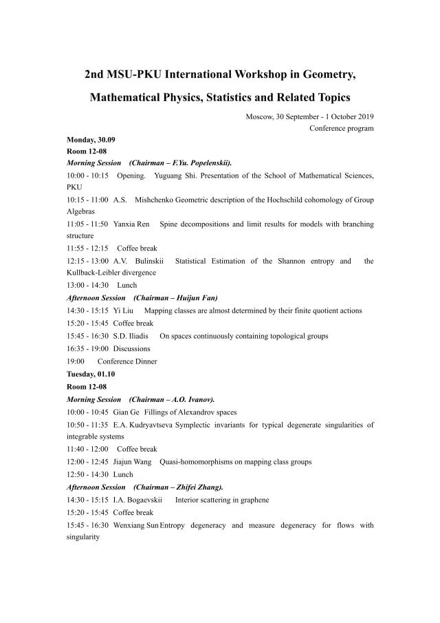 本次出访,代表团除了与俄方高校及科研机构洽谈合作、共研发展外,双方还开展了丰富的学术活动,以期在学术上更多地交流观点。其间,第二届中俄联合数学会议在莫斯科大学举办,范辉军和章志飞分别主持了半天的会议,代表团教师葛剑、刘毅、任艳霞、孙文祥、王家军参与会议并作学术报告。刘毅在圣彼得堡大学向同行们介绍了研究团队及相关研究内容。