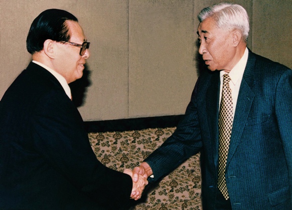 1985年9月10日,胡乔木(左)与丁石孙(右)