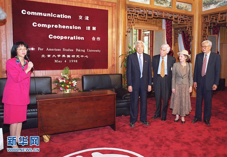 1988年北大90周年校庆,丁石孙与周培源、马适江