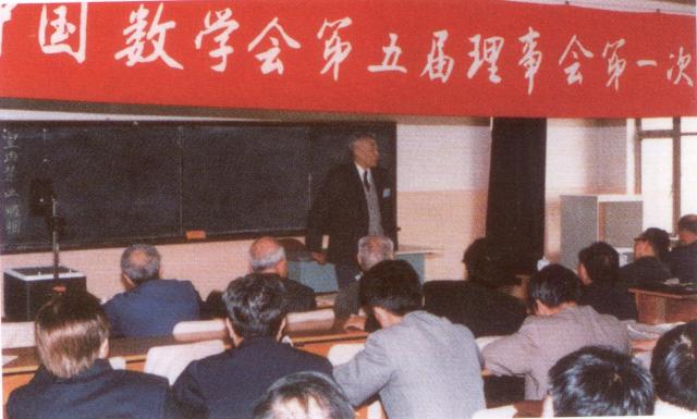 1988年4月,丁石孙当选中国数学会第五届理事会副理事长并致辞