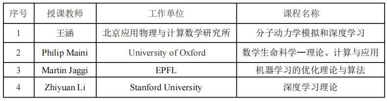 应用数学暑期学校。交叉学科研究是国际上科学研究的主流方向,这项计划正是基于交叉学科发展的要求展开的。本次应用数学专题讲习班的课程设置涉及科学计算、数学物理、数学生物、最优化和机器学习等领域,通过邀请国际上该领域的知名学者进行授课,将国际上具代表性的顶尖学术思维引入中国学术界,使学生接触到最前沿的研究方向和成果,拓展思维模式,得到与国际水平接轨的训练,以培养更多从事交叉学科研究的优秀人才。