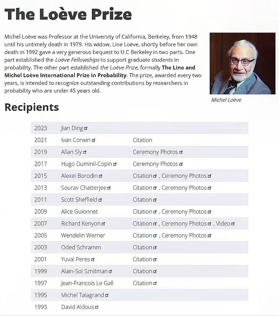 消息来源:Jian Ding Ph.D. 2011, Wins Loève Prize | Department of Statistics (berkeley.edu)