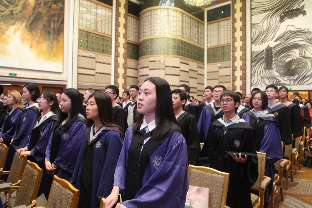 在典礼正式开始前,现场大屏幕播放了2019届数院毕业视频。视频带领毕业生们回忆了自己在燕园求学的收获与成长的点点滴滴,引起在座师生的深深共鸣。毕业典礼在雄壮的国歌声中正式拉开帷幕。