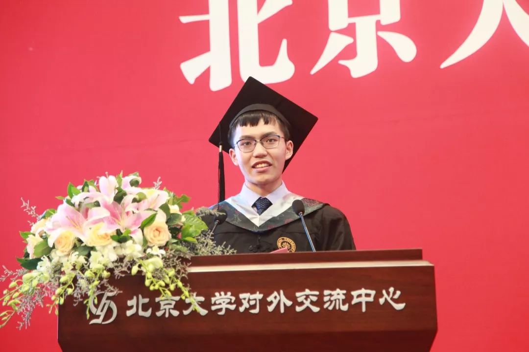 毕业生代表发言环节,2015级本科生夏铭涛、2017级硕士生王瞻、2014级博士生王钰铭向在座师生们分享了自己的北大数院故事,他们带大家一起回忆了在北大学习、科研、生活、成长的点点滴滴,分享了自己与数院、与数学之间的故事,也感谢了北大与学院对自己多年的培养。同时,希望大家在提升个人素养、完善人格的同时,培养强烈的社会责任感和使命感。仰望星空、脚踏实地。珍惜韶华,砥砺前行。